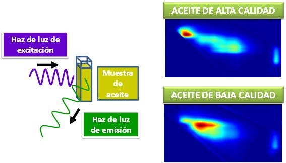 Los espectros de emisión correspondientes a los distintos compuestos fluorescentes del aceite dan lugar a huellas espectrales características. Las huellas de aceites de distintas calidades son diferentes debido a su composición y al manejo sufrido a lo largo de la cadena de valor. “La distinta composición puede tener su origen en la variedad de aceituna, los procesos de extracción en almazara, los procesos industriales de refinado, mezclas de distintas calidades, exposición al calor, a la luz, y al oxígeno en el almacenamiento” concluye Natalia Hernández Sánchez, otra de las investigadoras del grupo de la UPM.