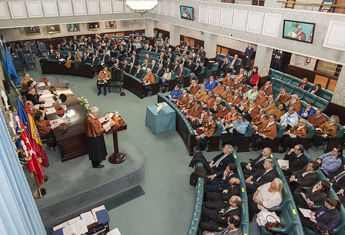 Esta ceremonia es el marco habitual de entrega de las distinciones que la UPM concede a profesores e investigadores por su compromiso docente y con la I+D. Esta vez, el Premio de Investigación ha distinguido a Luis Gil, y el de Proyección Investigadora a Ramón Perea, ambos de la ETS de Ingeniería de Montes, Forestal y del Medio Natural.