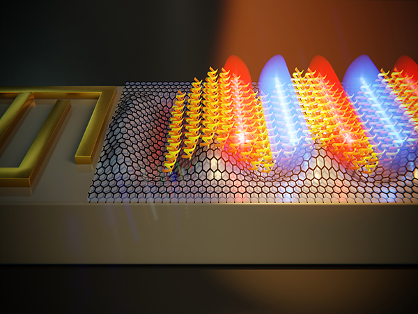 Como describen los investigadores en este trabajo, la onda acústica de superficie (SAW, por sus siglas en inglés) ondula la superficie de una estructura bidimensional basada en grafeno, confinando la luz en el rango del infrarrojo medio en volúmenes muy pequeños e intensificando así la interacción entre luz y la materia en la nanoescala. En concreto, en la estructura ondulada se forman cuasipartículas llamadas polaritones de plasmón-fonón superficial, que son parte luz (fotones) y parte materia (vibraciones electrónicas y de la red cristalina).