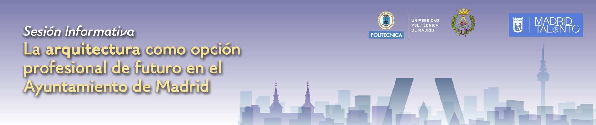 - Técnicos del Ayuntamiento de Madrid en el marco de su Estrategia “Madrid Talento”, quiere dar a conocer su oferta profesional para futuros/as arquitectos/as, opciones de futuro para trabajar en entornos profesionales.
