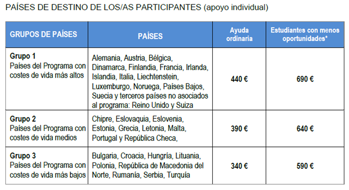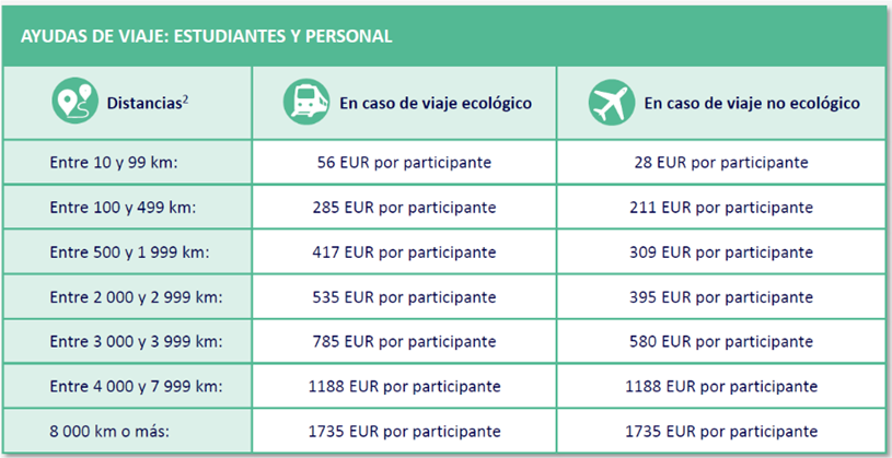 Asimismo, los importes de las ayudas de viaje de acuerdo con las reglas de financiación del programa Erasmus+ serán las indicadas en la siguiente tabla: