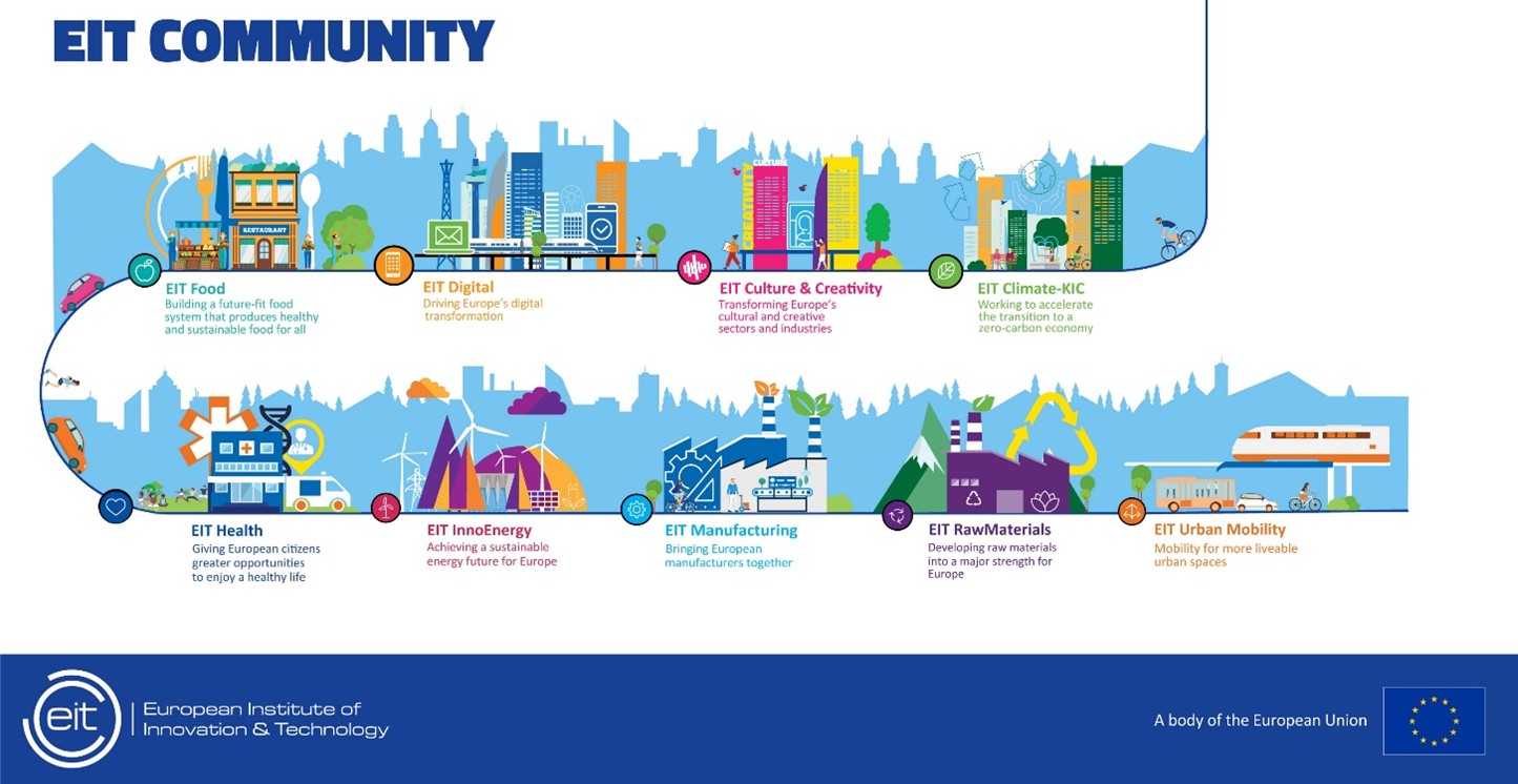 El Instituto Europeo de Innovación y Tecnología (EIT) se creó en 2008 mediante el Reglamento (CE) Nº 294/2008. Su objetivo es abordar los principales desafíos sociales mejorando la capacidad de innovación y el rendimiento de la Unión Europea a través de la integración del denominado “Triángulo del Conocimiento” de la educación, la investigación y la innovación. El EIT logra estos objetivos principalmente a través de sus llamadas Comunidades de Conocimiento e Innovación (KIC – Knowledge and Innovation Communities), ecosistemas abiertos que integran grandes empresas, startups, universidades y centros de investigación europeos, mejorando su colaboración para alcanzar innovaciones de primer nivel, potenciar el emprendimiento y modernizar los instrumentos de educación. Para el período 2021-2027, Horizonte Europa es el programa de la UE que financia el EIT.