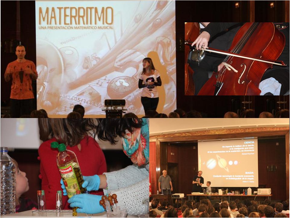 En Materritmo, por su parte, un matemático, una pianista y percusionista y un vídeo artista ofrecieron un espectáculo de humor en el que, tras revisar algunos conceptos matemáticos y otros musicales, mostraron cómo ambos se combinan de modo que los primeros pueden ser utilizados para elaborar las composiciones musicales.