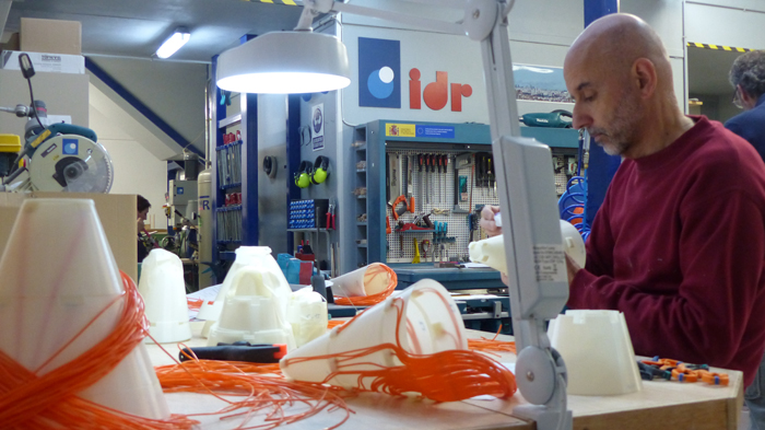 Los 6000 m2 que lo componen se han representado a escala 1:75, en una maqueta realizada con meticulosidad y precisión por el equipo del IDR/UPM. “El modelo ha sido complejo de construir porque son 17 conos huecos, todos diferentes, que hemos realizado con impresión 3D. En el interior de cada cono hay unas cúpulas que, también, son todas diferentes, porque en el proyecto original están revestidas de diversos materiales que responden a diferentes técnicas de aislamiento, de las más tradicionales a innovadoras”, explican.