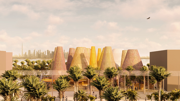 “Personas y lugares”, el proyecto del Pabellón de España en Expo Dubái 2020, se caracteriza por una geometría muy peculiar de 17 volúmenes cónicos que además cumplen una función climática, evacuando el calor y atemperando el espacio interior (ya que no habrá aire acondicionado) para hacerlo confortable.