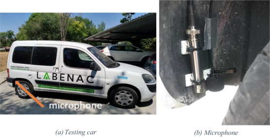 Vehículo de pruebas y localización del micrófono. Fuente I2A2 – UPM.