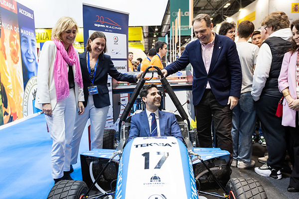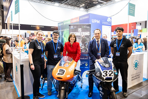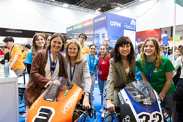 Éxito del stand de la UPM en Aula Miles de estudiantes y representantes de la Administración han visitado el stand de la Universidad Politécnica de Madrid en la Feria de la Educación Aula. Un año más, la Universidad Politécnica de Madrid (UPM) ha participado en la Feria de la Educación Aula, celebrada en el recinto ferial de IFEMA del 26 al 30 de marzo, donde ha presentado su oferta educativa. Durante esos días, los futuros estudiantes han podido conocer, de mano de profesores, investigadores y estudiantes de la UPM, los 54 Grados y dobles Grados que ofrece esta universidad relacionados con las áreas de conocimiento de Tecnologías Agroforestales y Medioambientales, Tecnología de la Arquitectura y e Ingeniería de Caminos y Civil, Tecnologías Industriales, Tecnologías de la Información y las Comunicaciones, Deporte, Diseño de Moda y Matemáticas y con 14 Programas Académicos (Grado + Máster) Como novedad, la UPM apuesta por ampliar su oferta con la creación de la Facultad de Ciencias de la Salud de la UPM. El nuevo centro estará ubicado en el Campus Sur de esta universidad. La propuesta de creación de esta Facultad fue aprobada el 20 de julio de 2023 por su Consejo de Gobierno. La actividad docente aún tendrá que esperar hasta que se presente oficialmente la oferta formativa de este recién aprobado centro universitario. Pero no solo han sido los estudiantes los que se han acercado hasta el stand la UPM. Las ministras de Ciencia, Innovación y Universidades, Diana Morat, y de Igualdad, Ana Redondo, visitaron el stand y pudieron charlar con los estudiantes, acompañadas por el rector de la UPM, Óscar Garcia Suárez. También estuvieron el consejero de educación, ciencia y universidad, Emilio Viciana, la viceconsejera de universidades, Ana Ramírez y el director general de universidades, Nicolás J. Casas. Todos ellos conocieron algunas innovaciones que llevó la UPM a Aula como el satélite UPMSat-3 de ETSIAE y los diseños de UPM MotoStudent Electric, UPM MotoStudent Petrol y UPM Racing, además de un huerto hidropónico de la ETSIAAB.