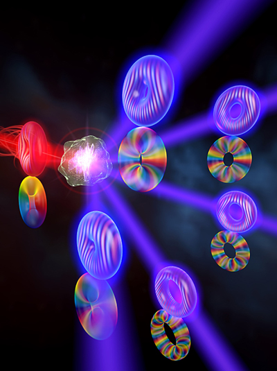 Un hallazgo pionero en el campo de la luz estructurada En colaboración con la Universidad de Salamanca y la Universidad de Colorado, ha logrado crear por primera vez vórtices espacio temporales de luz a frecuencias cercanas a los rayos X. Sus resultados han sido publicados en Nature Photonics. Los vórtices ópticos espaciotemporales (STOV) son pulsos de luz estructurados en el espacio-tiempo con una topología única que acopla los dominios espacial y temporal. Esta estructura y su evolución organizada en el tiempo les otorgan propiedades únicas que pueden aprovecharse para explorar fenómenos físicos simultáneamente en el espacio y en el tiempo, algo esencial para estudiar dinámicas ultrarrápidas en materiales, moléculas o nanoestructuras. @ Steven Burrows and Kapteyn-Murnane group, JILA". Un equipo internacional de investigadores con participación del profesor Miguel Ángel Porras, del Grupo de Sistemas Complejos y de la Escuela Técnica Superior de Ingenieros de Minas y Energía de la UPM, en colaboración con investigadores de la Universidad de Salamanca y de la Universidad de Colorado en Estados Unidos han logrado crear por primera vez vórtices espacio-temporales de luz a frecuencias cercanas a los rayos X, lo que se conoce como “ultravioleta extremo”. Hasta ahora, este tipo de vórtices sólo habían sido observados en longitudes de onda largas y frecuencias bajas, como el infrarrojo o el visible, debido a las limitaciones que poseen los elementos ópticos convencionales a frecuencias más elevadas. “Estos vórtices son literalmente tornados de luz en la que ésta gira en torno a su centro al mismo tiempo que viaja a la velocidad de la luz. En el centro del tornado luminoso se encuentra el vórtice, donde la fase de la luz tiene una singularidad y su intensidad es nula, por lo que también es posible imaginárselos como "donuts" viajando a la velocidad de la luz”, explica el investigador de la UPM. Un hallazgo pionero Este nuevo tipo de luz se enmarca en lo que se hoy se llama luz topológica y luz estructurada espacio-temporalmente, un área de investigación especialmente fecunda en los últimos años. La novedad en el artículo publicado en Nature Photonics es que esta luz topológica y altamente estructurada se ha logrado en el ultravioleta extremo gracias al proceso de generación de altos armónicos, un fenómeno por el que Anne L'Huillier,Ferenc Krausz y Pierre Agostini recibieron el premio Nobel de Física el año 2023. “Gracias a ello, la estructuración de la luz se da a una escala espacial nanométrica y a una escala temporal en el régimen de los attosegundos (10^-18 segundos), lo que les hace extremadamente útiles para explorar la dinámica de electrones, particularmente en materiales magnéticos, medios quirales y en nanoestructuras”, añade Porras. Para los investigadores, la relevancia de este estudio radica en que abre un nuevo campo de trabajo en el ámbito de la investigación de interacciones ultrarrápidas entre luz y materia cerca de los bandas de absorción de materiales magnéticos y cuánticos. |
