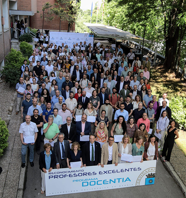 La UPM reconoce a sus docentes excelentes La Universidad Politécnica de Madrid reconoce la calidad docente de 327 profesores y profesoras que han obtenido la calificación de excelentes en el programa de evaluación DOCENTIA. El Paraninfo de la Universidad Politécnica de Madrid ha acogido la entrega de los diplomas acreditativos a los 327 profesores y profesoras que han obtenido la calificación de “Excelente” en las últimas convocatorias del programa DOCENTIA-UPM 2.0, el sistema oficial de evaluación de la actividad docente del profesorado, correspondientes a los cursos 2021-22 y 2022-23. El acto, presidido por Óscar García Suárez, rector de la UPM, contó con la presencia del equipo rectoral, directores de Centros y Departamentos, representantes del estudiantado y los profesores galardonados. Durante la ceremonia, se destacó el compromiso de la Universidad con la calidad educativa y la mejora continua de la docencia, pilares fundamentales del modelo DOCENTIA, desarrollado de acuerdo con el modelo de la ANECA y la Fundación Madri+d. “Reconocer la excelencia docente no es solo un acto de justicia, sino una apuesta decidida por el futuro de nuestra Universidad y de nuestros estudiantes”, subrayó Óscar García Suárez en su intervención. El rector de la UPM felicitó a los docentes galardonados, pues “sois los responsables de que tengamos el ecosistema de profesionales formados por esta Universidad” tan apreciados por el sector empresarial. En esta misma línea, José Manuel Ruiz Román, vicerrector de Profesorado, reivindicó la puesta en valor de la docencia, “principal actividad” y “razón de ser” de profesores y profesoras. “Nuestra principal misión es transmitir conocimiento”, y este tipo de reconocimientos al “esfuerzo y a la implicación” puede “servir para mantener vuestra ilusión” por la docencia, subrayó. Calidad del profesorado El programa DOCENTIA-UPM 2.0 evalúa de forma integral la actividad docente del profesorado a través de un modelo basado en cinco dimensiones: obligación docente, planificación, desarrollo, resultados e innovación y mejora. La calificación de “Excelente” se otorga a aquellos docentes que superan los 90 puntos sobre 100, cumpliendo además los mínimos exigidos en cada dimensión. La percepción de la calidad docente de los estudiantes, a través de encuestas e informes de los representantes estudiantiles de los centros cuenta casi el 50% de la calificación de los profesores evaluados. En estas dos ediciones ha sido evaluados más de 800 profesores (802) y han participado evaluando, desempeñando diferentes roles, más de 400 miembros de la comunidad universitaria, entre estudiantes, personal técnico y de administración de servicios y personal docente e investigador. Los profesores reconocidos recibirán, además del diploma acreditativo, un certificado oficial de “Profesor o Profesora Excelente”, que podrá ser utilizado en procesos de promoción, concursos de innovación educativa y convocatorias de premios institucionales. Este reconocimiento se enmarca en la política de calidad de la UPM, que promueve una cultura de evaluación transparente, participativa y orientada a la mejora continua, en línea con los estándares del Espacio Europeo de Educación Superior. |