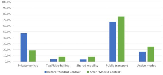 Figura 1. Cuota modal antes y después de Madrid Central. Fuente: UPM