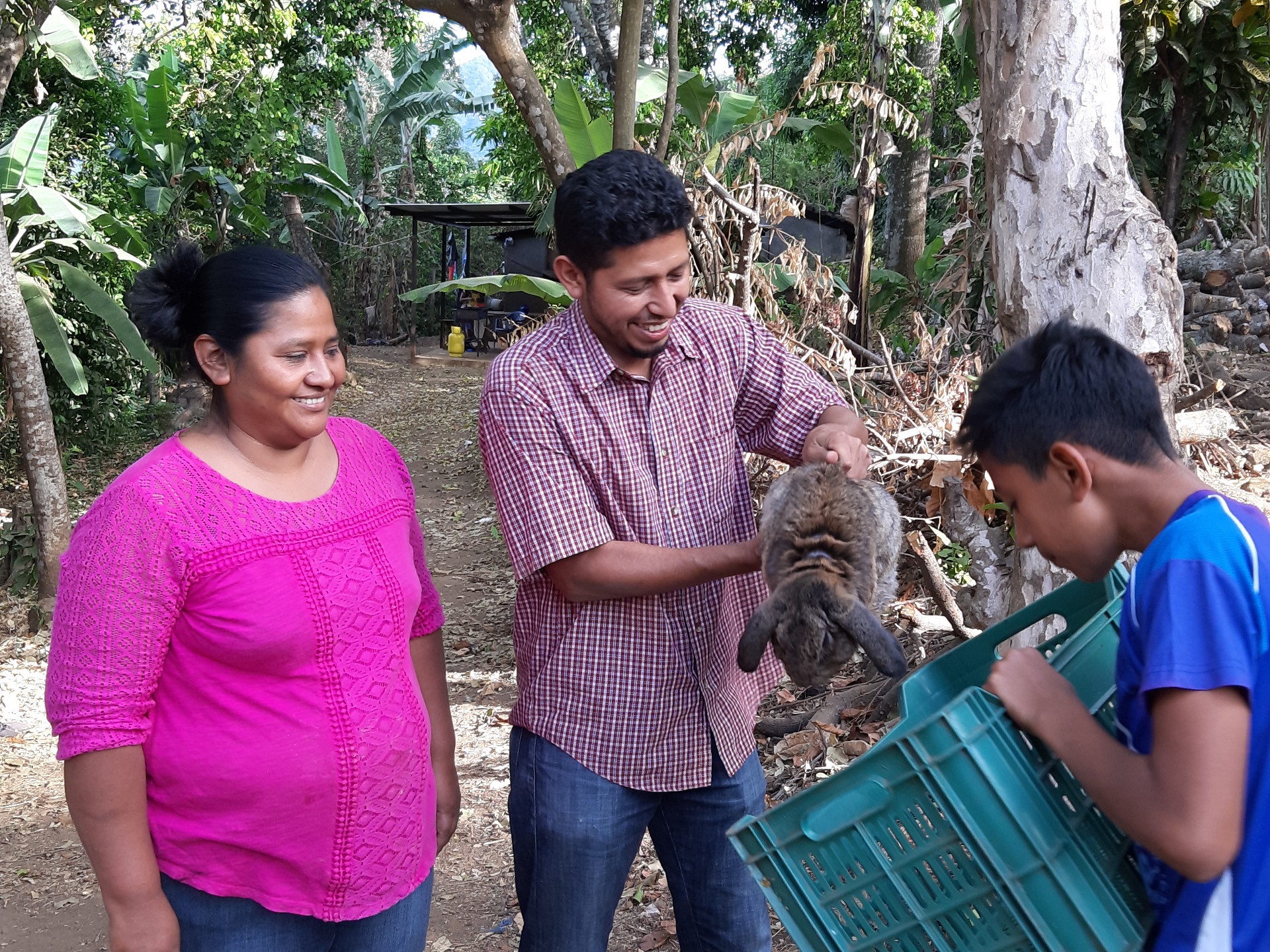En El Salvador, otros productores compartieron su experiencia en diversificación de cultivos para no depender del maíz y frijol y extender su actividad. Juan Carlos Rivas inició con la siembra de hortalizas y tuvo la idea de criar conejos.