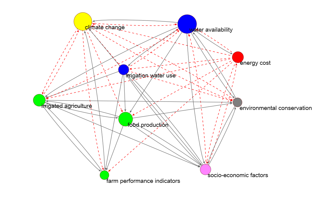 Tras analizar esos mapas, los investigadores observaron que los distintos grupos de interés perciben el nexo agua-energía-alimentación como un sistema complejo constituido por un gran número de variables y de interconexiones entre ellas.
