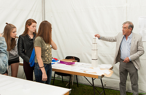 La actividad que coordina Pascual Marín, profesor de la Escuela Técnica Superior de Edificación, consiste en la realización por los participantes de maquetas de un rascacielos. Las piezas son de cartulina y tienen forma de tubos rectangulares de diferentes tamaños, a semejanza de los módulos con que se construyó realmente la torre que sirve de modelo. La propuesta ayuda a “desarrollar la visión espacial”, explica Marín, pero, sobre todo, exige “un trabajo de equipo”, además de “liderazgo”.