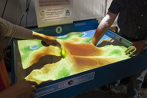 “Se trata de que los participantes vean de una forma muy sencilla cómo es la representación del relieve en los mapas”. Así explica Marina Martínez, profesora de la Escuela Técnica Superior de Ingenieros en Topografía, Geodesia y Cartografía, el objetivo de la actividad que coordina, titulada “Simulador de mapa topográfico dinámico”.
