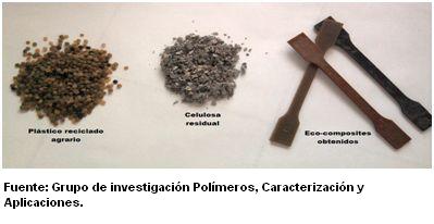 La investigación realizada se basa en dos pilares para favorecer el reciclado mecánico de los plásticos agrarios. El primero es la utilización de fibras de celulosa residuales provenientes del proceso de fabricación de papel como refuerzo para los desechos de plásticos agrarios. La mezcla de plásticos residuales agrarios y de residuos celulósicos permite obtener materiales eco-compuestos. El segundo pilar es la utilización en la mezcla de cantidades seleccionadas de plásticos procedentes de residuos urbanos y de aditivos escogidos con el fin de mejorar las propiedades mecánicas de los materiales reciclados obtenidos. La utilización de fibras de celulosa residuales es de gran interés medioambiental, económico y social, ya que son materiales biodegradables, de bajo coste, ligeros y de origen renovable.