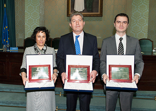 El rector de la Universidad Politécnica de Madrid (UPM), Carlos Conde, ha entregado, en el marco de la ceremonia conmemorativa de Santo Tomás de Aquino, los galardones que reconocen anualmente la labor de sus investigadores más desatacados. Asunción Gómez, catedrática de la Escuela Técnica Superior de Ingenieros Informáticos, ha ganado el Premio UPM de Investigación, mientras que Miroslav Vasic, vinculado al Centro de Electrónica Industrial, el Premio UPM de Proyección Investigadora. El Banco Santander ha sido distinguido con el Premio UPM de Colaboración en Investigación.