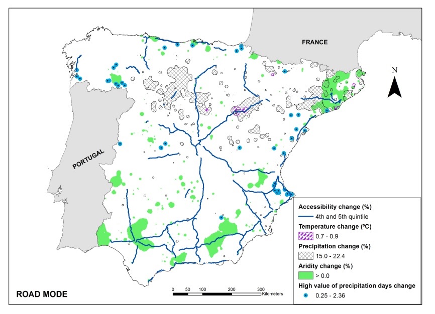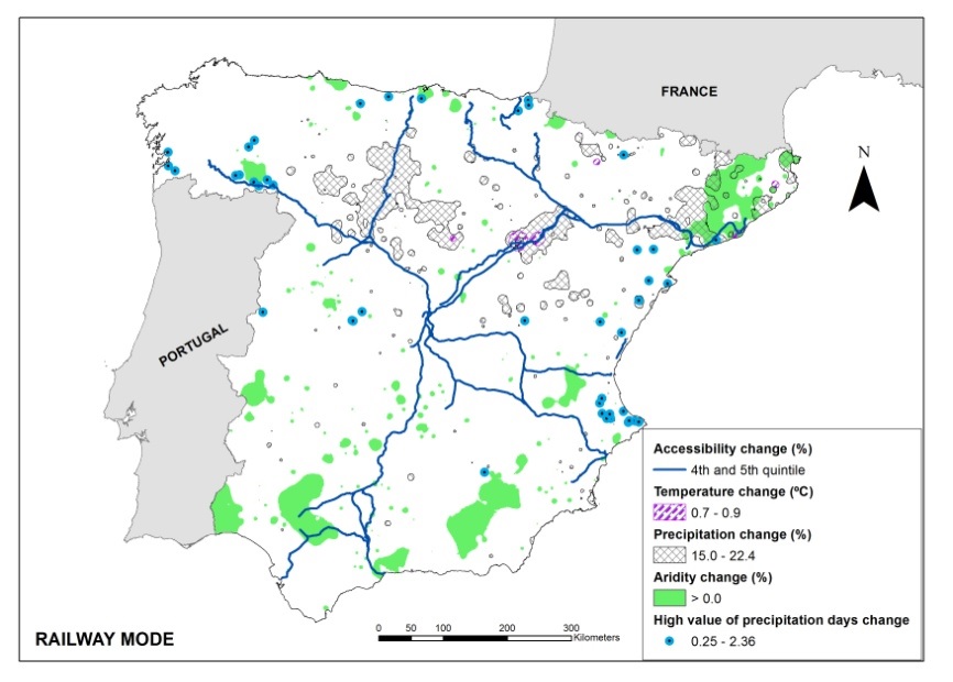 En total, se analizaron 396 tramos de carreteras y 186 de ferrocarril en términos de accesibilidad territorial, entendida como la posibilidad de alcanzar determinados destinos y se evalúo la posibilidad de que se vean afectados por cambios de temperatura, precipitación, aridez o días con precipitaciones extremas.