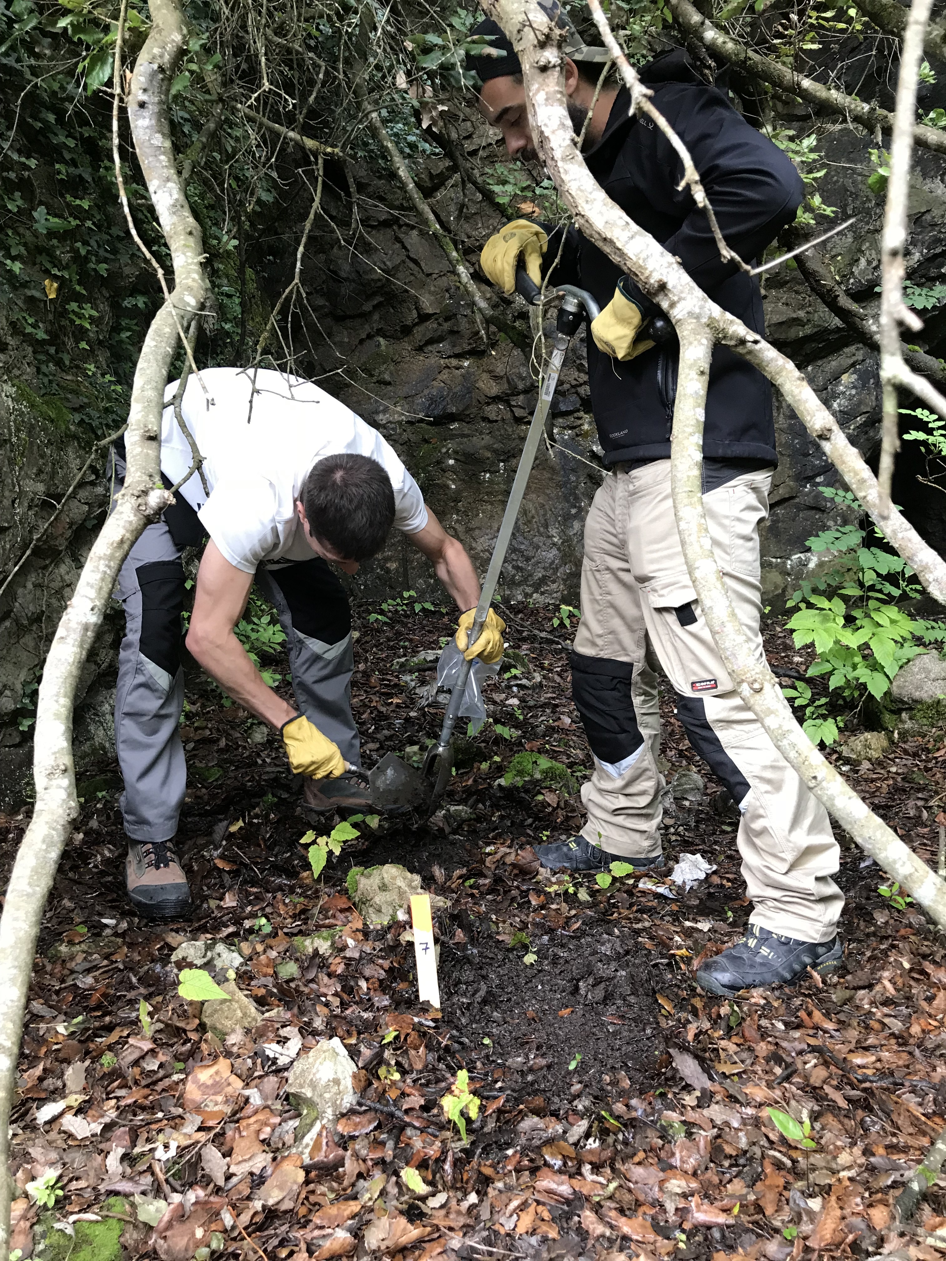 Toma de muestra de suelo en la cercanía de una bocamina. Fuente: Miguel Izquierdo.