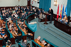 El rector, Carlos Conde, destacó en su discurso el papel esencial de la educación y la investigación para el progreso de la sociedad. Lo hizo al referirse a la “cortedad de visión” de algunos gobernantes, que “les lleva a confundir la necesidad de mayor eficiencia en lo económico” con un “ataque sin precedentes” a las universidades públicas. Tras felicitar a los nuevos doctores investidos en la ceremonia —en total, 293; casi el 40% con reconocimiento de doctorado europeo o internacional—, Conde apuntó al plan de la UPM de poner en marcha una Escuela Doctoral, que abordará una formación orientada al entorno industrial y empresarial. El objetivo es “contribuir a potenciar la actividad investigadora e innovadora de nuestras empresas, con muchas de las cuales ya tenemos conversaciones y preacuerdos para iniciar esta andadura”, declaró.