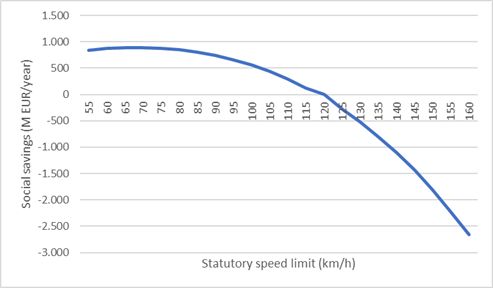 En el caso de las autovías, reducir el límite de velocidad supone una disminución en los costes sociales que compensa con creces el aumento de los tiempos de transporte. Aunque la medida se tomó para ahorrar combustible, el principal beneficio es la disminución en la accidentabilidad. Pese a ello, esta medida se implantó durante apenas unos meses.