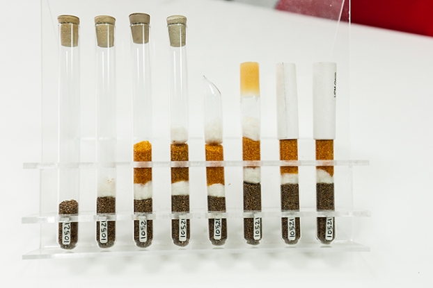 Proceso de encapsulación de las muestras de semillas. Se guardan desecadas con un indicador de gel de sílice y en tubos de vidrio cerrados herméticamente a la llama.