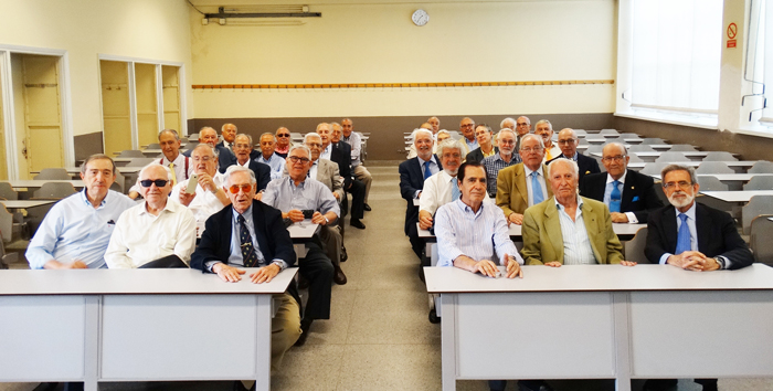 Un total de 58 estudiantes conformaban en 1967 la XIV promoción de ingenieros aeronáuticos; una treintena de ellos fueron los que pudieron acudir a este reencuentro con sus compañeros. Entre los asistentes, destacan tres nombres que se han seguido dedicando a la docencia y la investigación universitaria, Rafael Sanjurjo, catedrático en el departamento de Sistemas Aeroespaciales, Transporte Aéreo y Aeropuertos e impulsor de los cursos de verano UPM; Pascual Tarín, catedrático en el área de materiales y director de la ETSIA entre los años 1991 y 2000, y Manuel Martínez Sánchez, un eminente investigador en propulsión espacial avanzada que ha desarrollado su carrera en el MIT, donde sigue ejerciendo y que fue investido doctor honoris causa por la UPM en 2013.