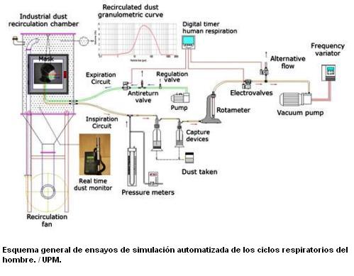 Gracias al desarrollo de un modelo de simulación del proceso respiratorio de una persona en una atmósfera con polvo tal y como se encontraría en su lugar habitual de trabajo, investigadores del Laboratorio Oficial J. M. Madariaga (LOM) de la Universidad Politécnica de Madrid (UPM) han diseñado un método que permite determinar de forma experimental la eficacia de una serie de filtros y máscaras de protección existentes en el mercado. El resultado podrá servir a los técnicos de prevención de riesgos para decidir el tipo más adecuado según la actividad profesional del usuario, lo que redundará en una mejor prevención de posibles enfermedades laborales.