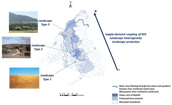 Diagrama esquemático que resume la variación de los principales procesos socio-ecológicos identificados en el gradiente rural-urbano estudiado en la Comunidad de Madrid. El acoplamiento entre la oferta y la demanda de recreación al aire libre y el turismo basado en la naturaleza está relacionado con la heterogeneidad del paisaje y la protección del paisaje. Fuente: Recreational and Nature-Based Tourism as a Cultural Ecosystem Service. Assessment and Mapping in a Rural-Urban Gradient of Central Spain. https://doi.org/10.3390/land10040343