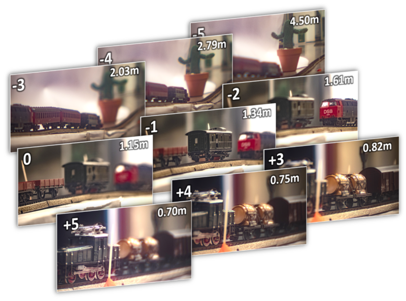 La combinación de distintos patrones de campos aplicados a los dos dispositivos en cascada emulan distintas lentes. Los campos eléctricos se aplican con la misma facilidad como en una pantalla plana cotidiana.
