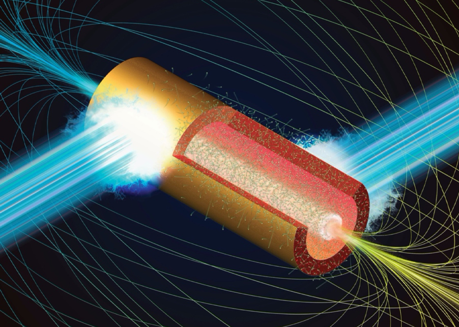 El método propuesto para obtener estos campos consiste en iluminar un diminuto microtubo de plástico de diámetro aproximadamente igual a la décima parte del grosor de un cabello humano mediante pulsos láser ultra-intensos. Estos pulsos generan electrones rápidos con temperaturas de decenas de miles de millones de grados (energías del orden de los MeV). Los electrones rápidos -junto con los iones fríos- se expanden hacia la cavidad interior del microtubo a velocidades cercanas a la de la luz. Un campo magnético inicial uniforme orientado según el eje del cilindro y con una intensidad del orden de unos pocos kT curva la trayectoria de las partículas cargadas durante su implosión debido a la fuerza de Lorentz, produciendo corrientes azimutales extraordinariamente altas de aproximadamente 1015 amperios/cm2 en las proximidades del eje del cilindro. Estas corrientes son las que generan campos magnéticos ultra-intensos del orden de los MT.