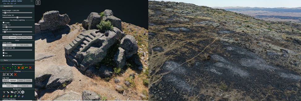 A la izquierda, nube de puntos 3D del Altar de Ulaca (Fuente UPM). A la derecha, foto del castro de Ulaca tras el incendio de Navalacruz (Fuente UCM).