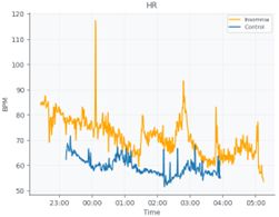 Ritmo cardiaco durante el sueño comparando un paciente con insomnio y un paciente control. Fiente: Marta Verona