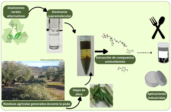 Como señala Andrea Sánchez, una de las investigadoras que ha participado en el estudio, “los resultados obtenidos confirman la posibilidad de sustituir los disolventes convencionales derivados del petróleo por disolventes supramoleculares sostenibles para la valorización de la poda de olivo mediante la recuperación de antioxidantes naturales”. Los resultados obtenidos han sido recientemente publicados en la revista ACS Sustainable Chemistry & Engineering Journal.