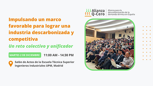 La descarbonización de la demanda térmica en la industria española volvió a situarse en el centro del debate durante el II Encuentro Anual de la Alianza Q-Cero, que se celebró en el Salón de Actos de la Escuela Técnica Superior de Ingenieros Industriales de la Universidad Politécnica de Madrid.