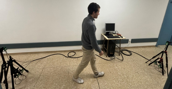 Radares desplegados en el Hospital Gregorio Marañón, analizando la marcha de un investigador del proyecto. Fuente: UPM. |