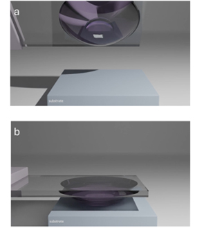 Técnica del hotpick-up: a) recogida de un cristal, b) deposición de este. Fuente UPM.