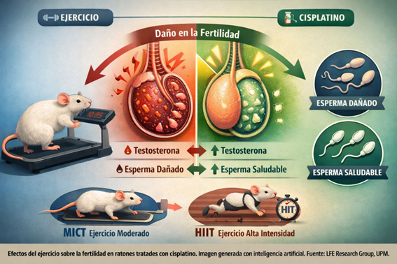 Un investigador de la UPM participa en un estudio que indica que el ejercicio regular podría ayudar a proteger la fertilidad frente a los efectos del cisplatino, un medicamento usado en quimioterapia, según resultados obtenidos en ratones.