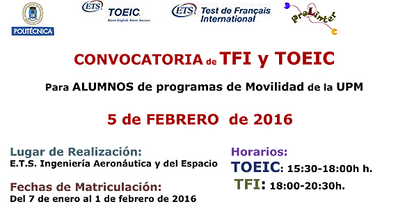 Pruebas de acreditación externa de Inglés (TOEIC) y de Francés (TFI). La matrícula estará abierta hasta el 1 de febrero…. Read more »