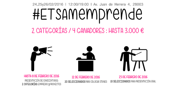 Muestra tus proyectos en ETSAM EMPRENDE. Días 24, 25 y 26 de febrero. Infórmate y participa. About Comunicación UPM Mail… Read more »