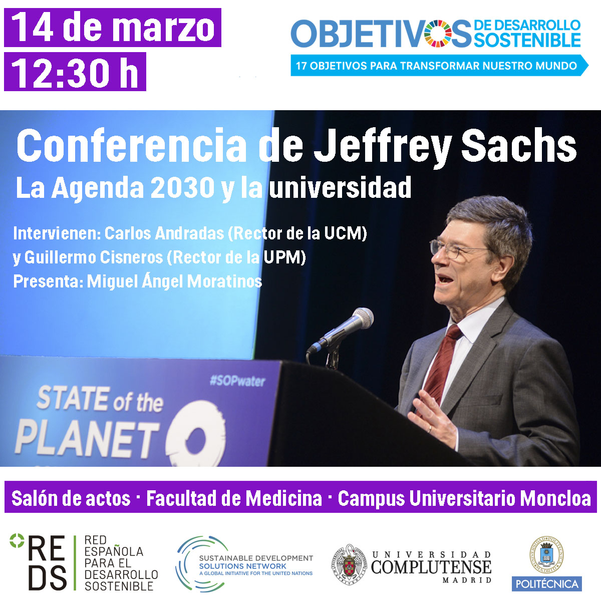 El economista Jeffrey Sachs, director de la Red de Soluciones para el Desarrollo Sostenible (SDSN, en sus siglas en inglés) y asesor del secretario general de Naciones Unidas, António Guterres, impartirá la conferencia La Agenda 2030 y la Universidad, sobre los desafíos globales para lograr los Objetivos de Desarrollo Sostenible (ODS) y el papel de la Universidad para su consecución.