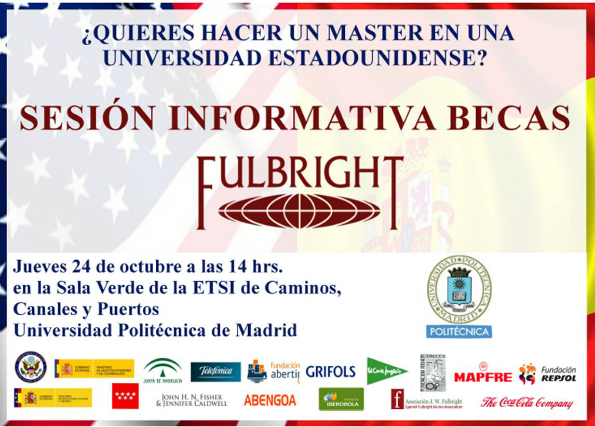 ¿Te gustaría continuar con tus estudios de Máster o con tu investigación en una universidad de Estados Unidos? Si quieres conocer todas las posibilidades que te ofrecen las becas Fullbright y qué debes hacer para optar a una de ellas, no te pierdas la sesión informativa que tendrá lugar el próximo jueves 31 de octubre, a las 14 horas, en la ETSI de Caminos, Canales y Puertos de la Universidad Politécnica de Madrid (UPM).