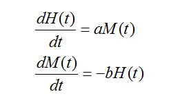 Donde H representa el amor del chico hacia la chica y M el de la chica hacia el chico, y a y b son dos constantes positivas.