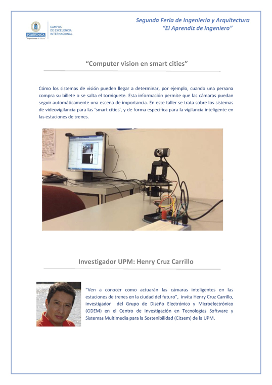 Henry Cruz Carrillo, investigador del Grupo de Diseño Electrónico y Microelectrónico (GDEM) en el Centro de Investigación en Tecnologías Software y Sistemas Multimedia para la Sostenibilidad (Citsem) de la UPM, explica su actividad “Computer vision en smart cities”.