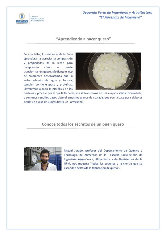 Miguel Jurado, profesor del Departamento de Química y Tecnología de Alimentos de la  Escuela Universitaria de Ingeniería Agronómica, Alimentaria y de Biosistemas de la UPM, nos muestra “todos los secretos y la ciencia que se esconden detrás de la fabricación de queso”.