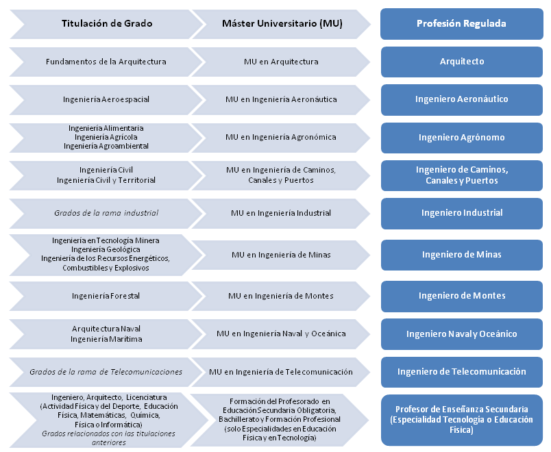 - Master's Degree with Professional Acreditation: The Spanish higher education system provides for degree programmes that qualify graduates for admission to or the exercise of regulated professional activities in Spain. The conditions to be met by the curricula of such programmes are established by the Government to guarantee that the degrees certify that the holder is in possession of the proper competences and knowledge to exercise the profession.