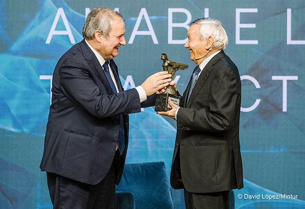 The TEDAE 2023 Awards recognize people and institutions whose technical, managerial, business, informative or academic work represents a relevant contribution in the field of the Defense, Security, Aeronautics and Space sectors, as well as commitment with professional excellence and an outstanding contribution to society. This year, the association has awarded UPM emeritus professor Amable Liñán with the “TEDAE Lifetime Achievement” award, a prize that was given to him by the Spanish Minister of Industry and Tourism, Jordi Hereu.