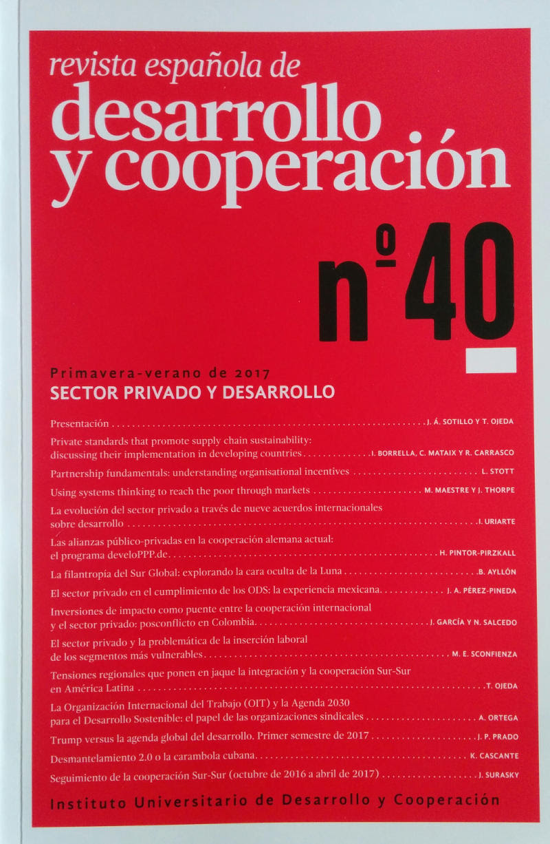 Presentación del Nº40 de la revista española de Desarrollo y CooperaciónEl próximo 3 de noviembre, el Máster acoge en sesión abierta a todo el público la presentación del Nº 40 de la revista española de Desarrollo y Cooperación, esta vez con un monográfico sobre sector privado y desarrollo, coordinado por Carlos Mataix, director del itdUPM.