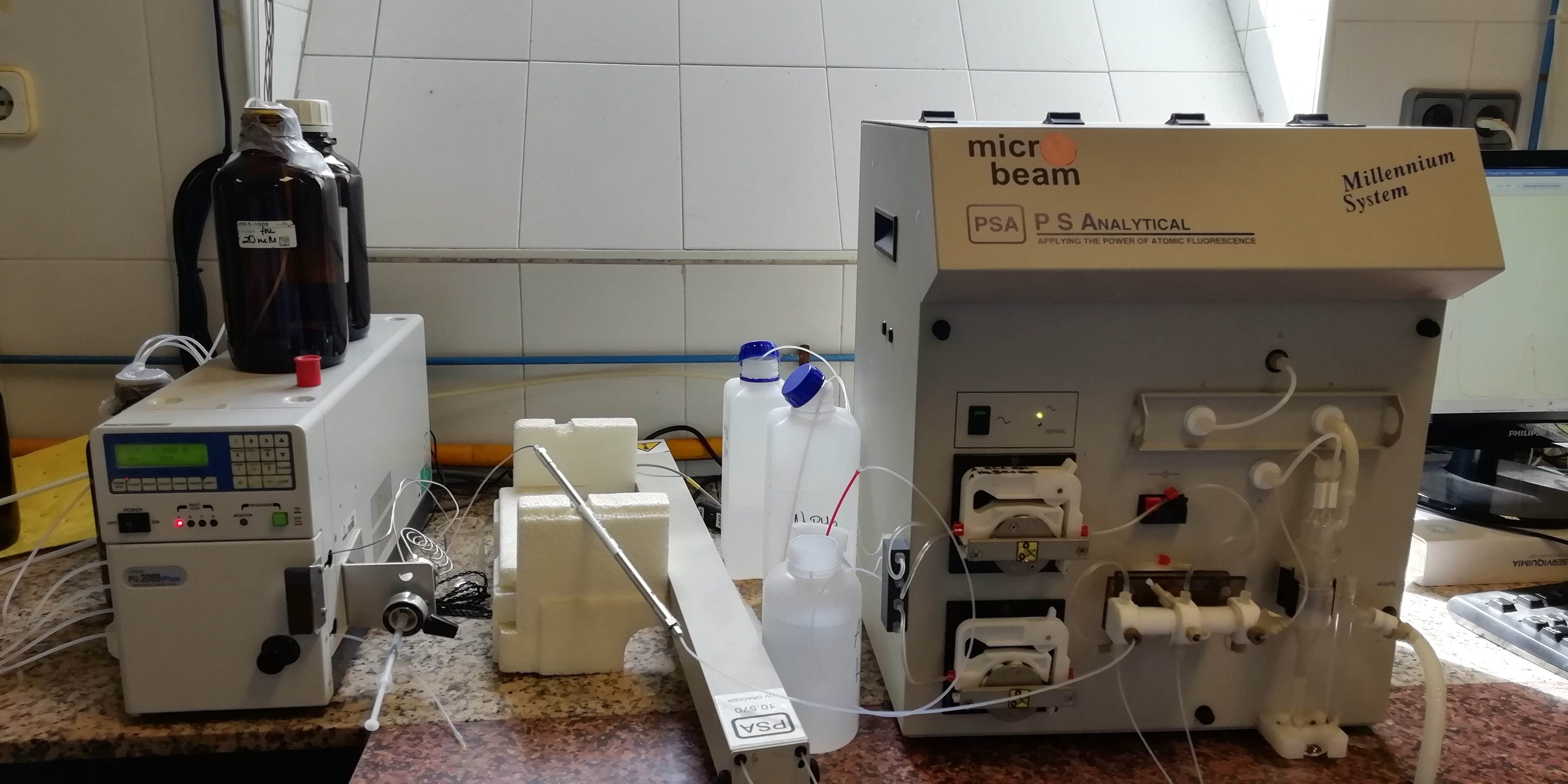 In this laboratory, ICP-OES analyzes of metals and some non-metals in environmental samples and materials (total and extractable contents in aqueous media) are carried out nowadays. Also, arsenic speciation analyzes in biological and environmental samples by HPLC (ion exchange) coupled to HG-AFS, are performed, allowing differentiation between water-soluble inorganic and organic species. On the other hand, a part of the laboratory is dedicated to teaching activities, such as lab practices in Chemistry and Environment subjects.