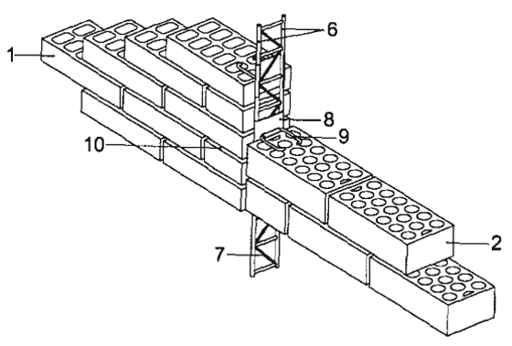 Consta de dos tipos de componentes, uno vertical, situado en la junta entre las diferentes fábricas a trabar, y varios horizontales, introducidos en el interior de las hiladas. El componente vertical puede ser continuo o estar formado por elementos discontinuos, alineados a lo largo de la junta.